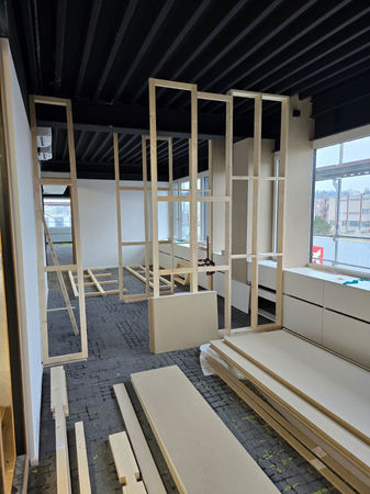 Im 3. Obergeschoss wurde ein moderner Büroausbau mit integrierter Ausstellungsfläche realisiert. Im Zuge dessen wurden auch die Fenster ersetzt, um die klimatischen Bedingungen zu verbessern und eine angenehme Arbeitsumgebung zu schaffen.
